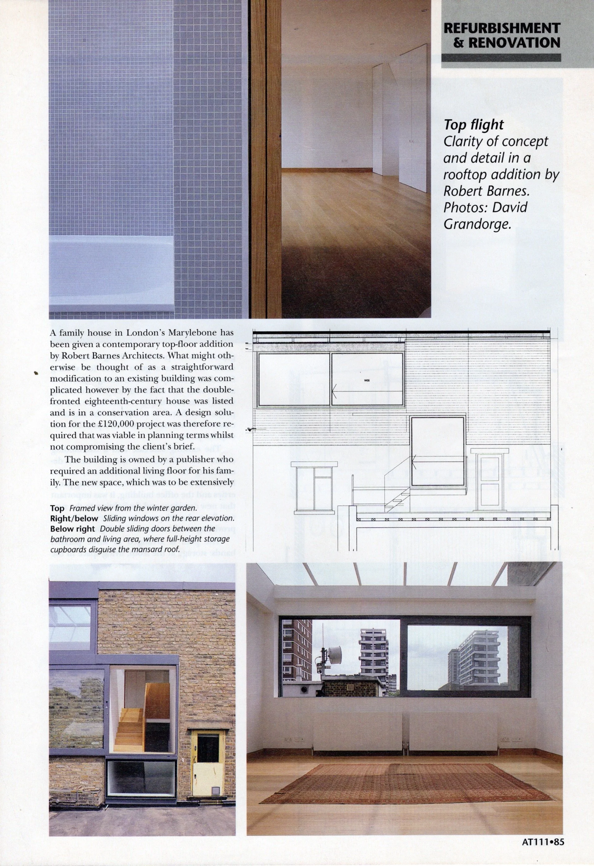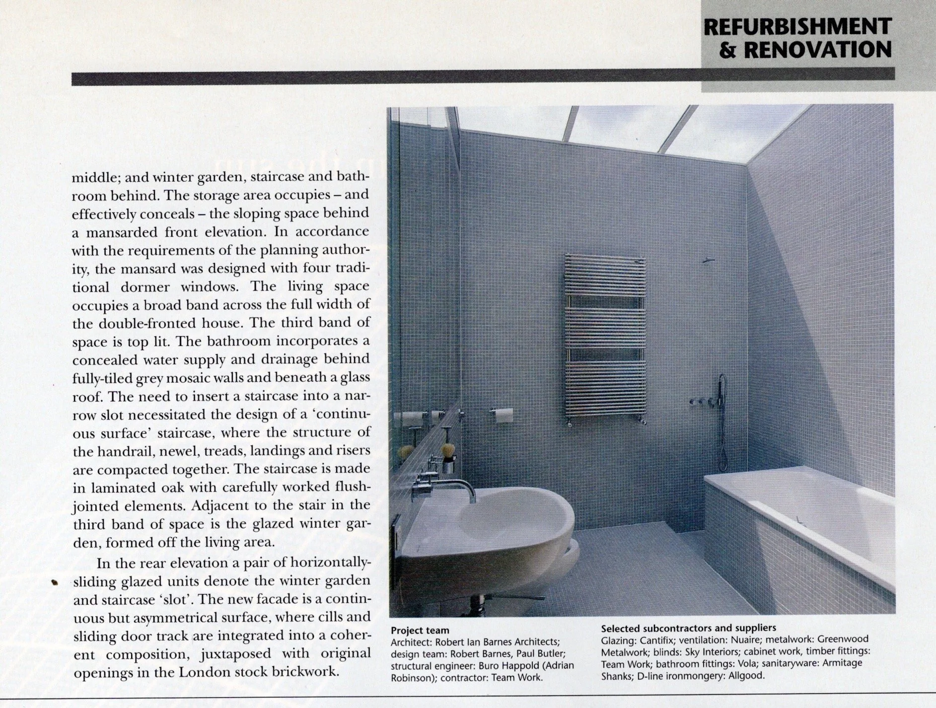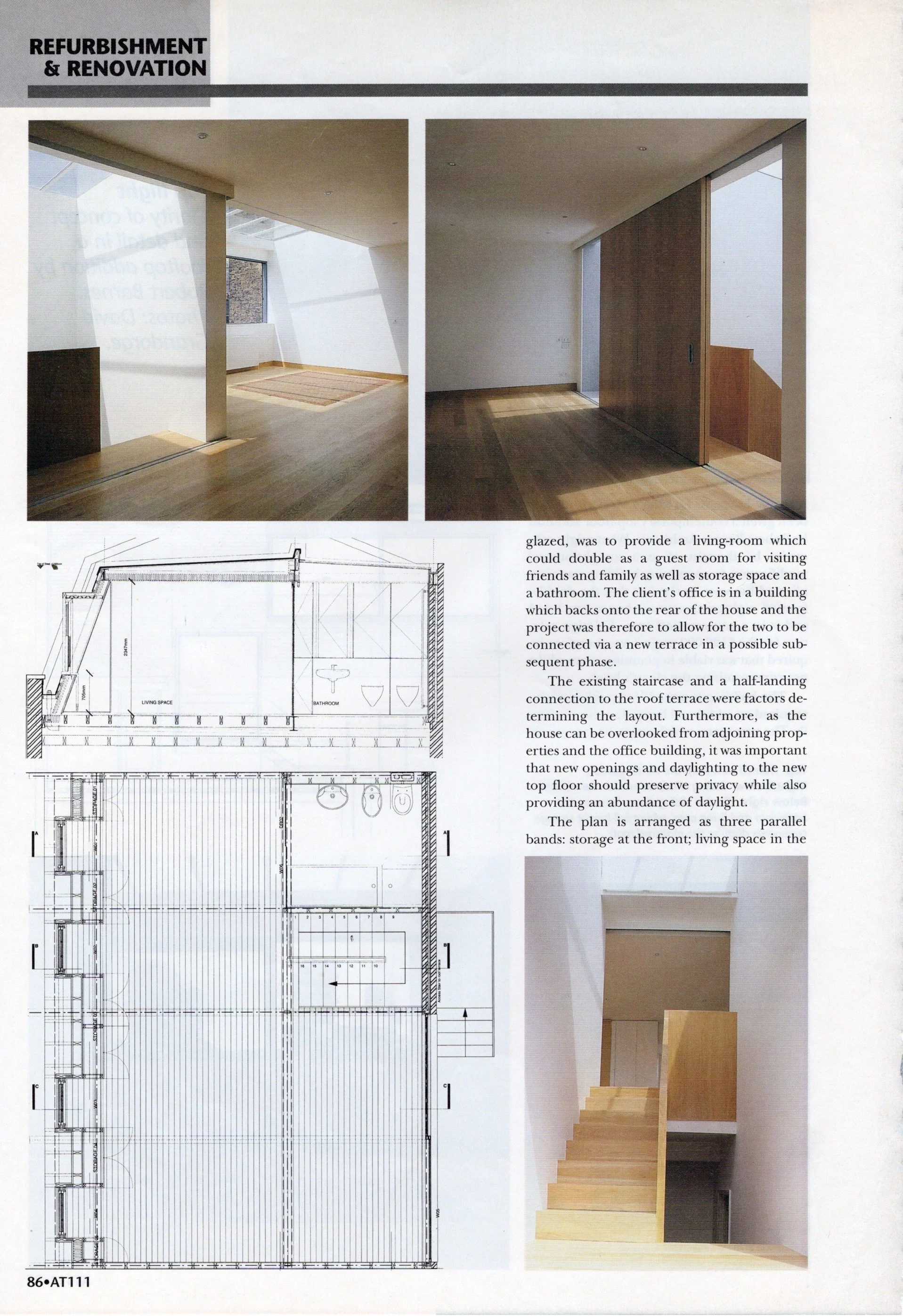 This terrace house in Whitechapel was built to house a group of visiting artists from Switzerland. The diverse group of successful artists come to England and especially London to broaden their understanding of their art. They are individuals but, in the unique situation of Jubilee Terrace, find themselves with potential collaborators. The coming together of a painter, a sculptor, a photographer, a musician, a film-maker, and a writer or critic demands a great flexibility as well as a building to create a sense of community.