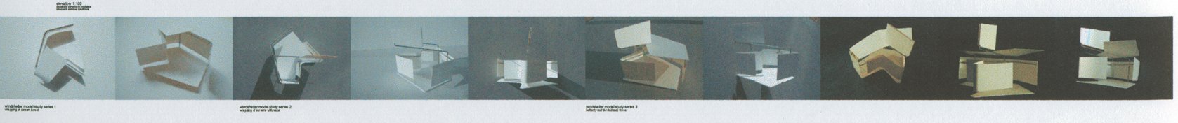 The sculptural form of the Wind-Wave is derived from the imagery of a traditional beach wind-breaker with a butterfly kite roof. By considering a form that allows for interior and exterior occupation, Wind-Wave does not just provide shelter, but rather a dynamic enclosure forming both internal and external space wrapped up within an apparently continuous and sinuous surface.